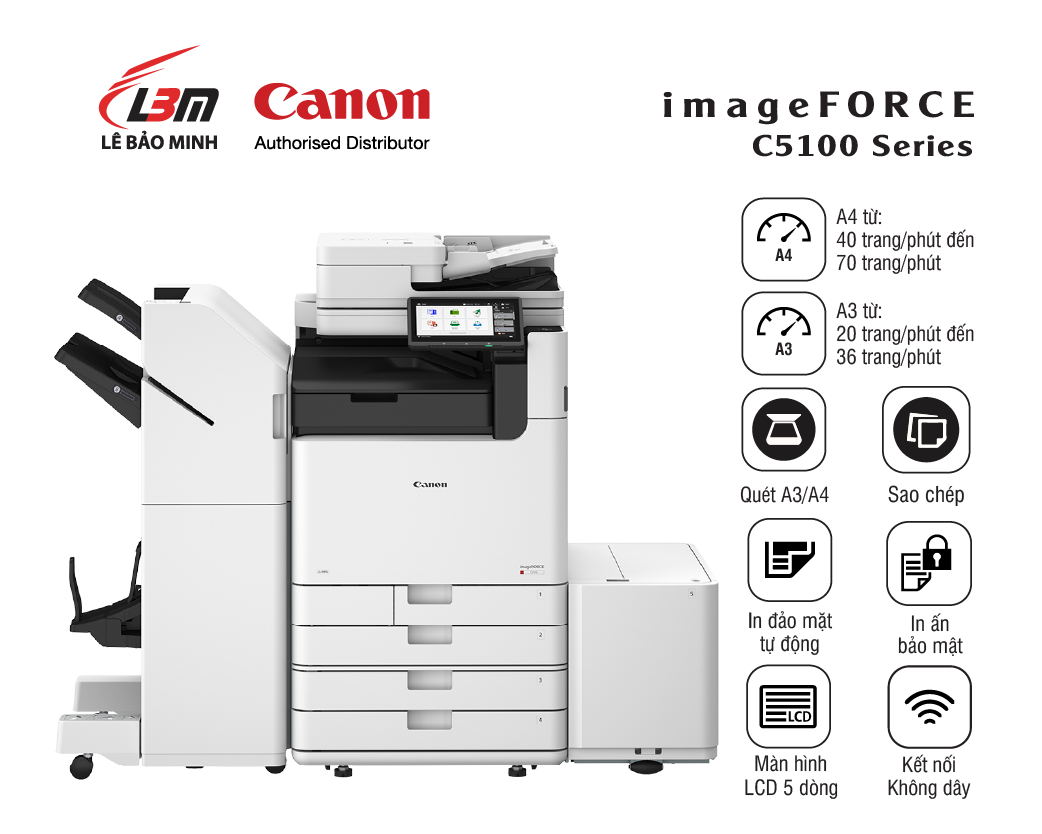 Dòng sản phẩm Canon imageFORCE C5100 là thiết bị đa chức năng linh hoạt, được phát triển nhằm nâng tầm khả năng sáng tạo trong văn phòng.