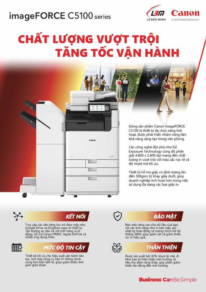 Dòng sản phẩm Canon imageFORCE C5100 là thiết bị đa chức năng linh hoạt, được phát triển nhằm nâng tầm khả năng sáng tạo trong văn phòng.