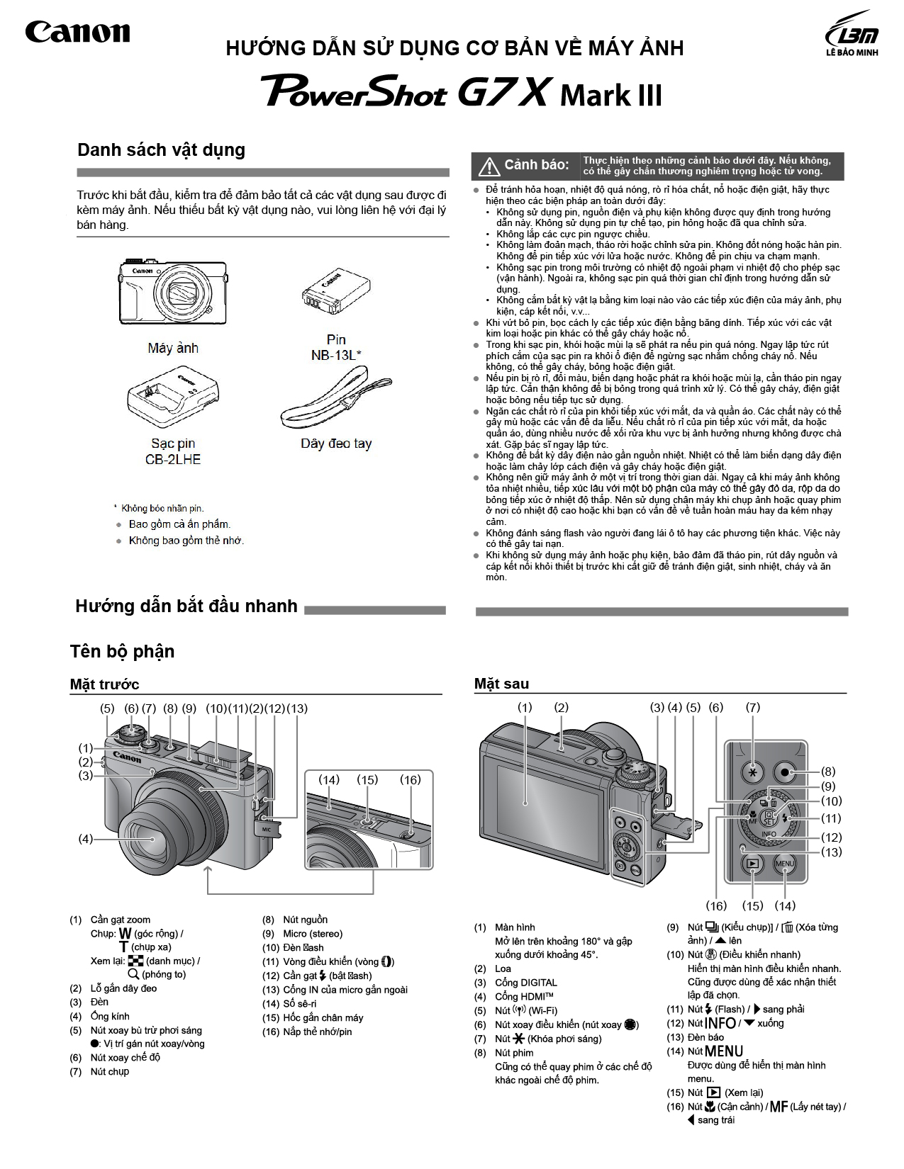 Đi kèm pin NB-13L; tối đa tới 235 hình khi sạc đầy (23 độ C)